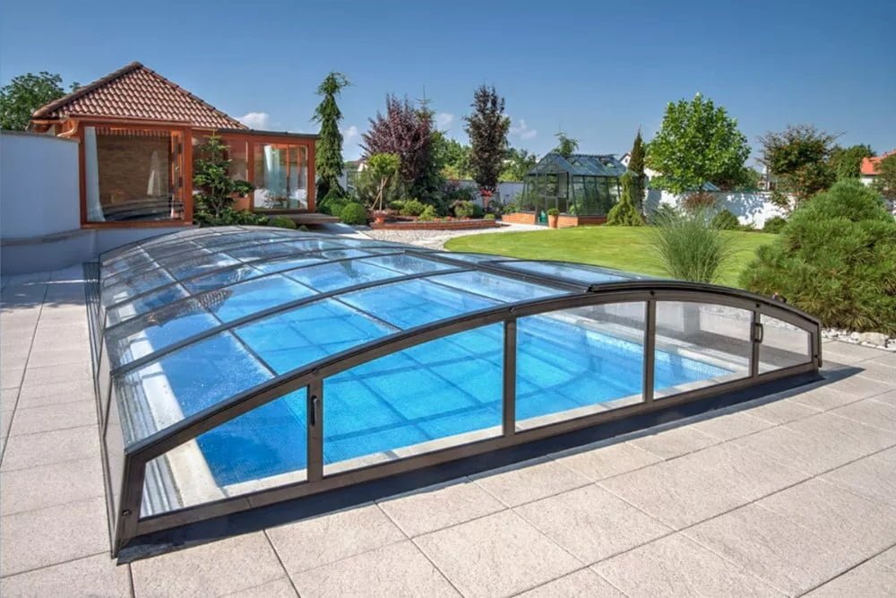 Motorized Flat Pool Enclosure - Slide - Vegametal - Videos Small Swimming Pools Pool Enclosures Swimming Pools